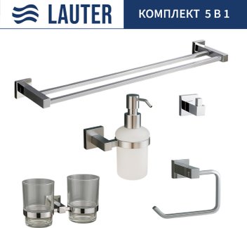 Набор аксессуаров для ванной Lauter 21SH6081 + 21SH6171 + 21SH6091 + 21SH6071 + 21SH6021 (Chrome, 5 предметов)